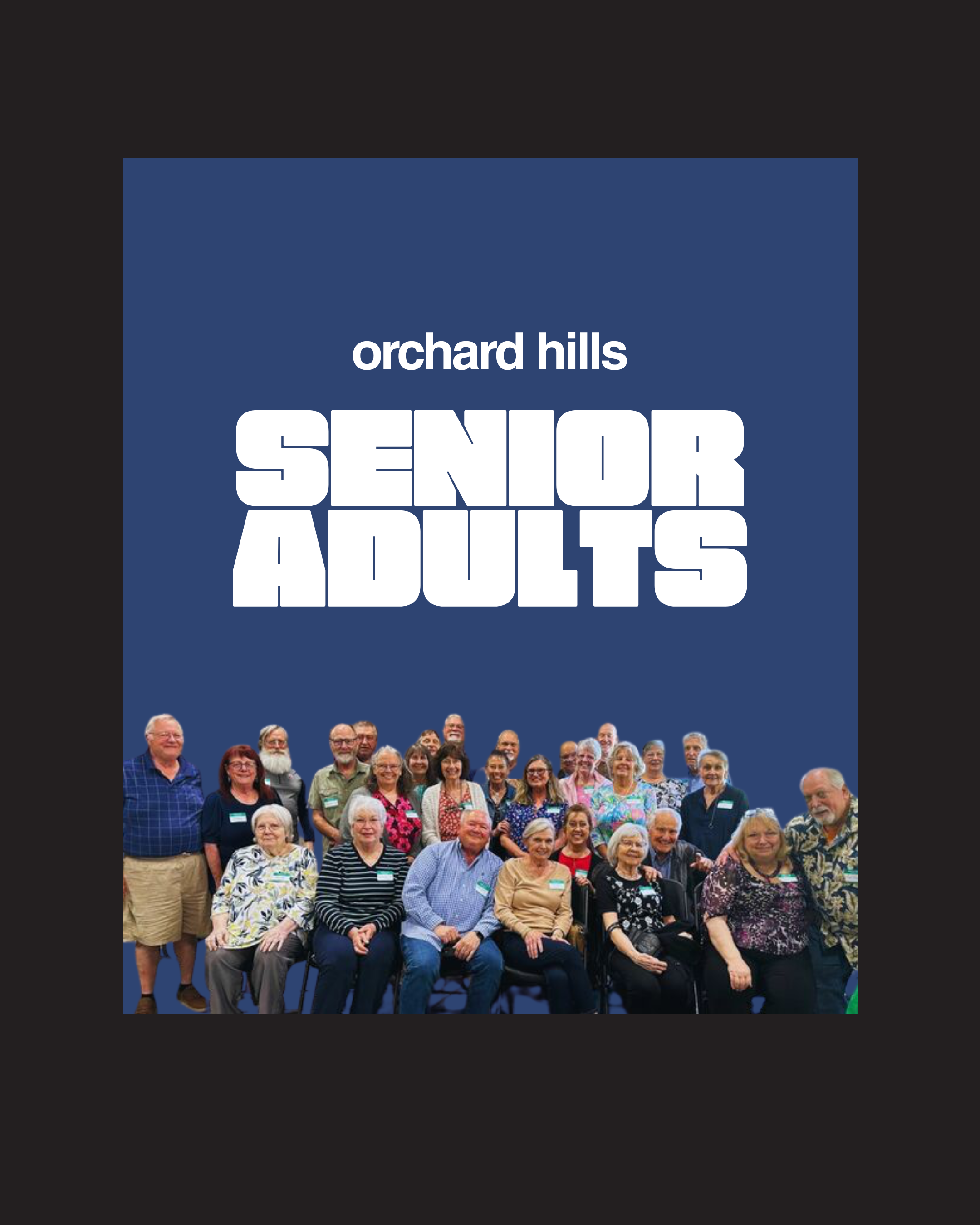 The Orchard Hills Senior Adult Ministry is focused on meeting the needs of people who are 55 or older. Activities center around building stronger relationships, enjoying activities that foster fellowship and fun, growing spiritually, and reaching out to serve others within our congregation and in our community.