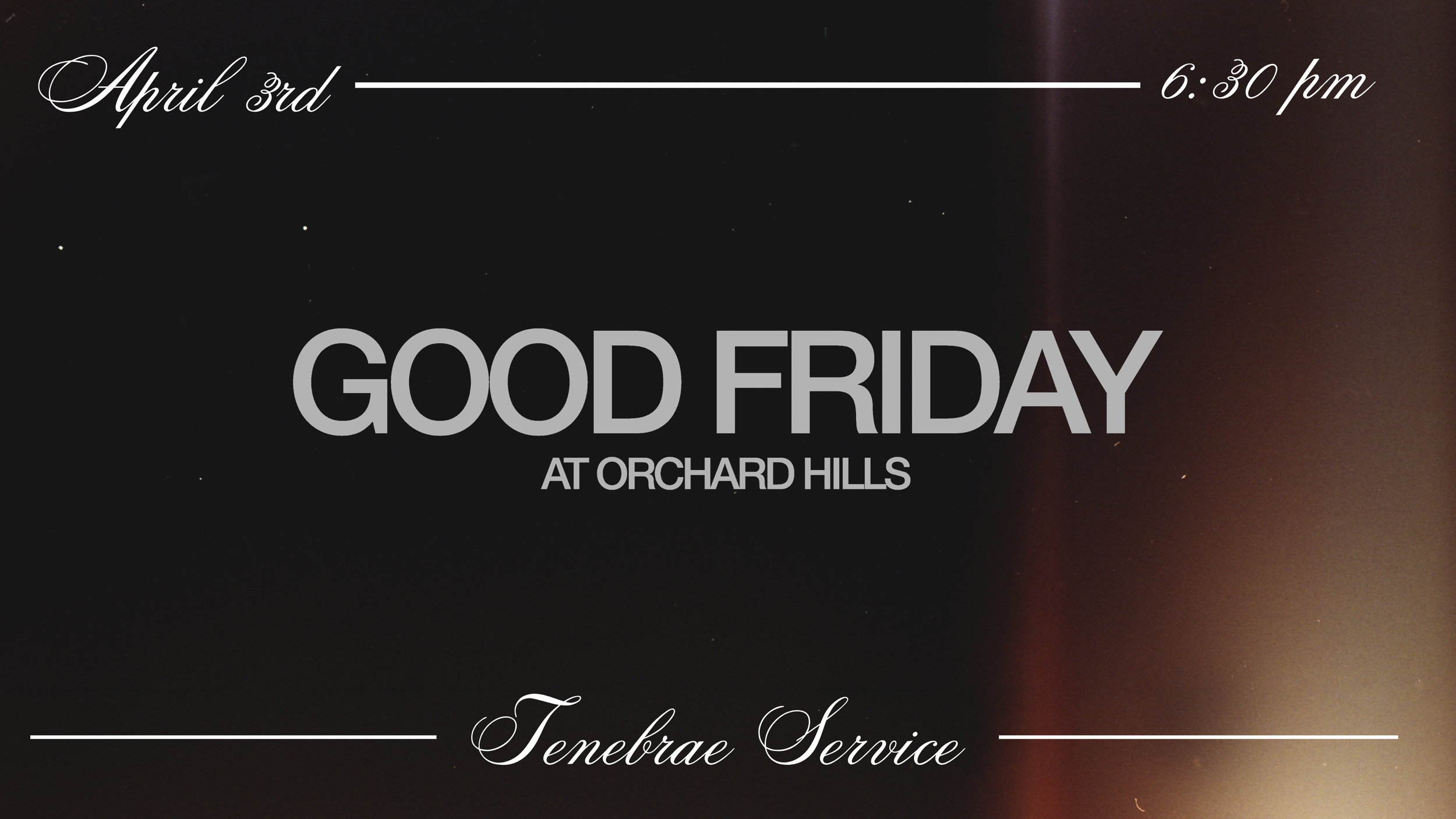 Good Friday will be a Tenebrae Service. Tenebrae, Latin for "darkness" or "shadows" is a solemn Christian liturgical service held during the final days of Holy Week. It commemorates the passion and death of Jesus, characterized by the gradual extinguishing of candles until the church is in complete darkness. Childcare will be available for 4 and under.