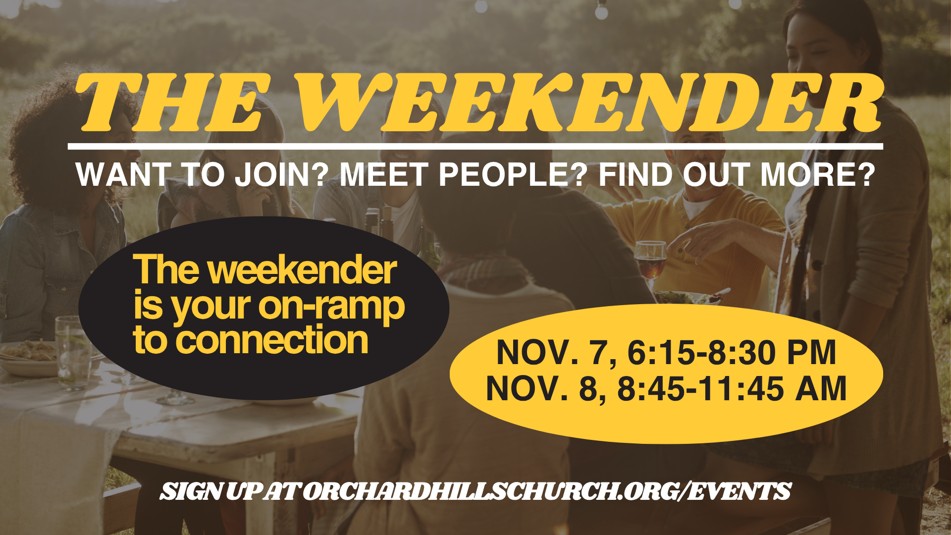 If you want to become a member of Orchard Hills, volunteer on a team, meet our leadership, or just find out more about the church, the Weekender is your on-ramp to connection. The content of each day is different and both days are required. If you need childcare, please sign your kids up. We will be offering onsite free childcare and food for them as well.